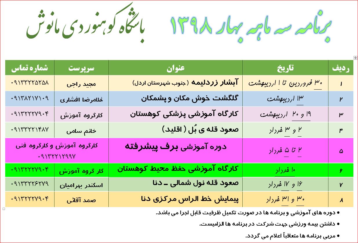 باشگاه کوهنوردی مانوش نیز در راستای اجرای بهتر برنامه ها و بنا به پیشنهاد فدراسیون و همچنین بخاطر اهمیت سلامت دوستانمان ، زین پس در برنامه های کوهپیمایی و کوهنوردی خود از همنوردانی که حداقل این دوره ها و آموزش ها را گذرانده باشند ثبت نام بعمل می آورد.
